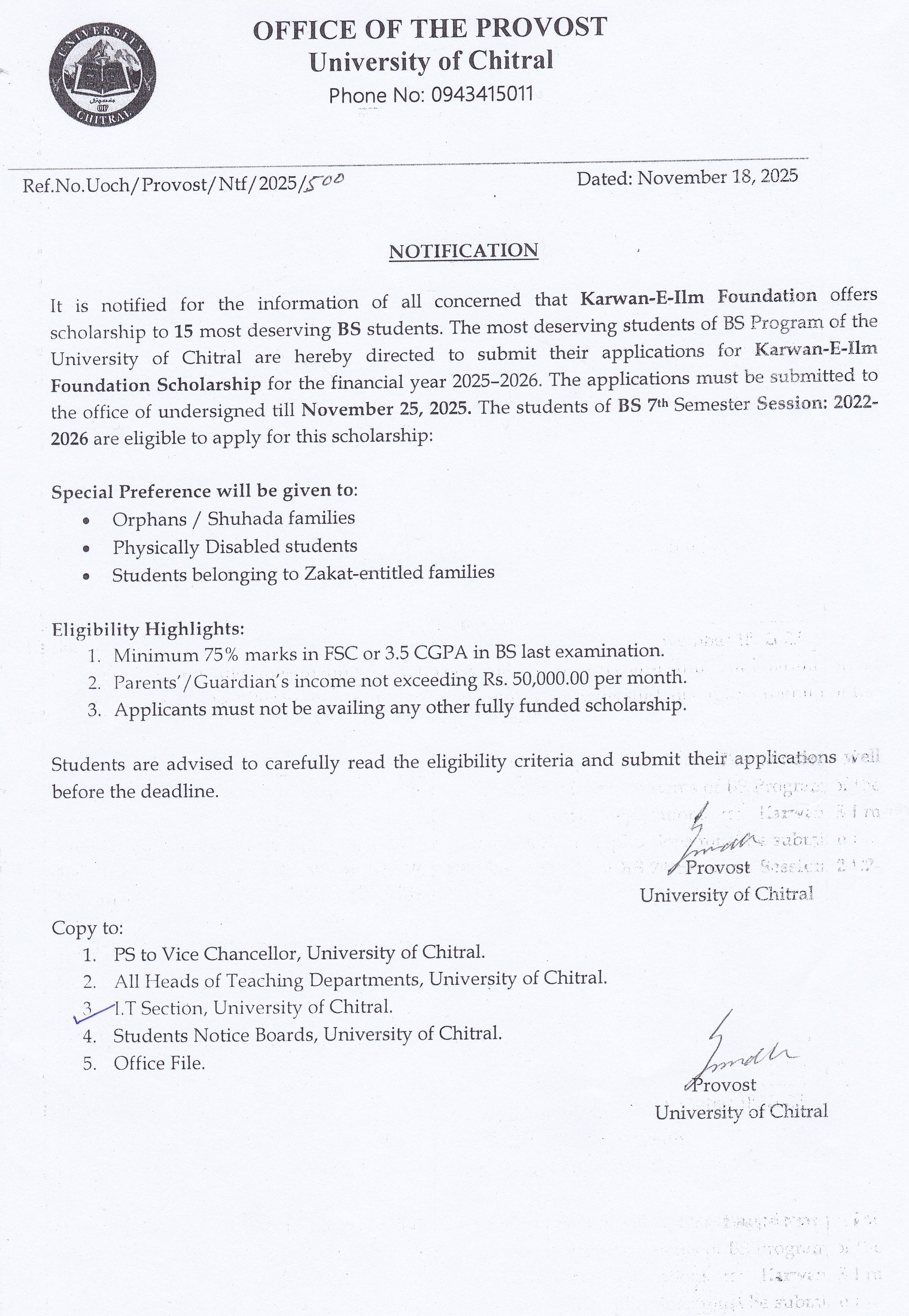 • University of Chitral will remain closed on account of "Quid-eAzam Day" on Thursday 25th December 2025