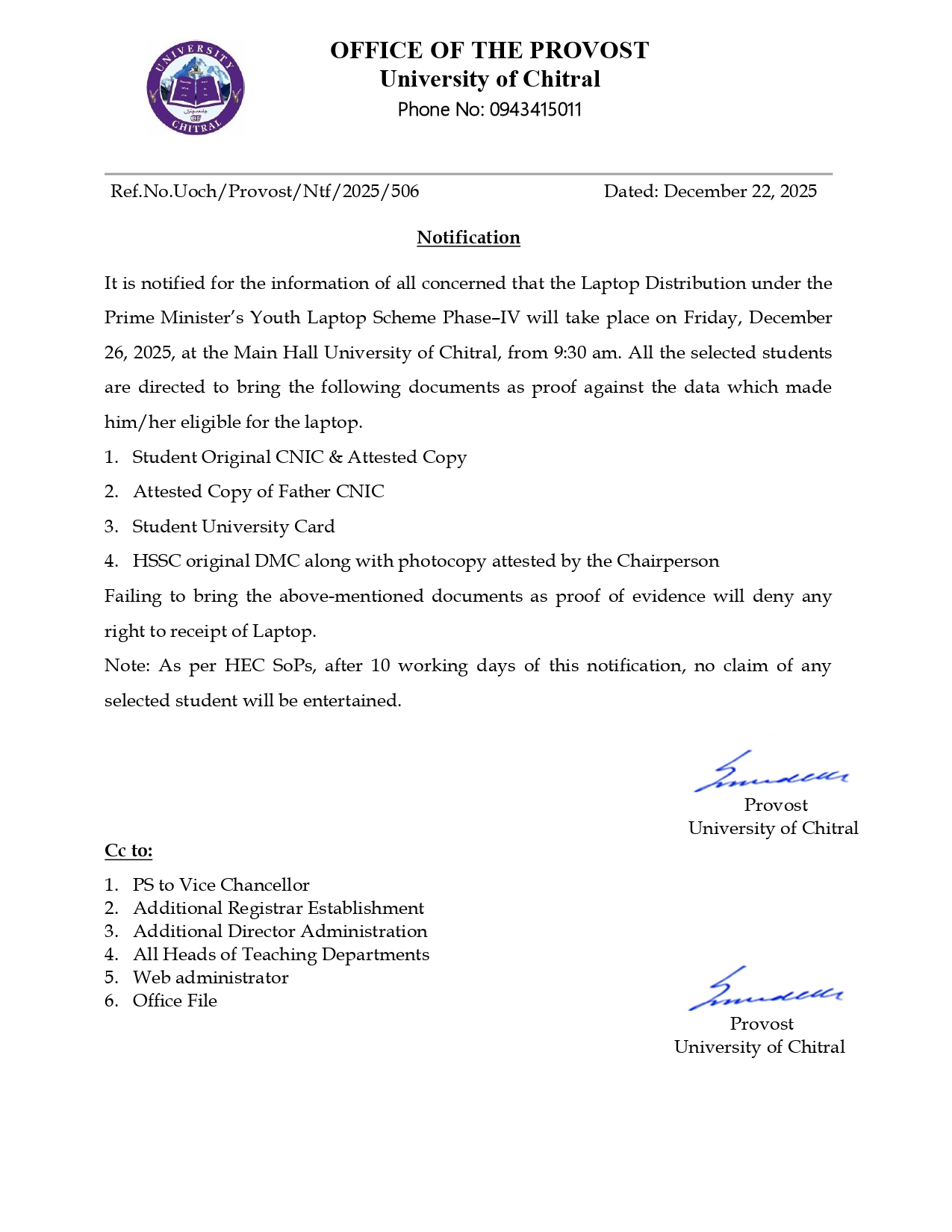 • University of Chitral will remain closed on account of "Quid-eAzam Day" on Thursday 25th December 2025