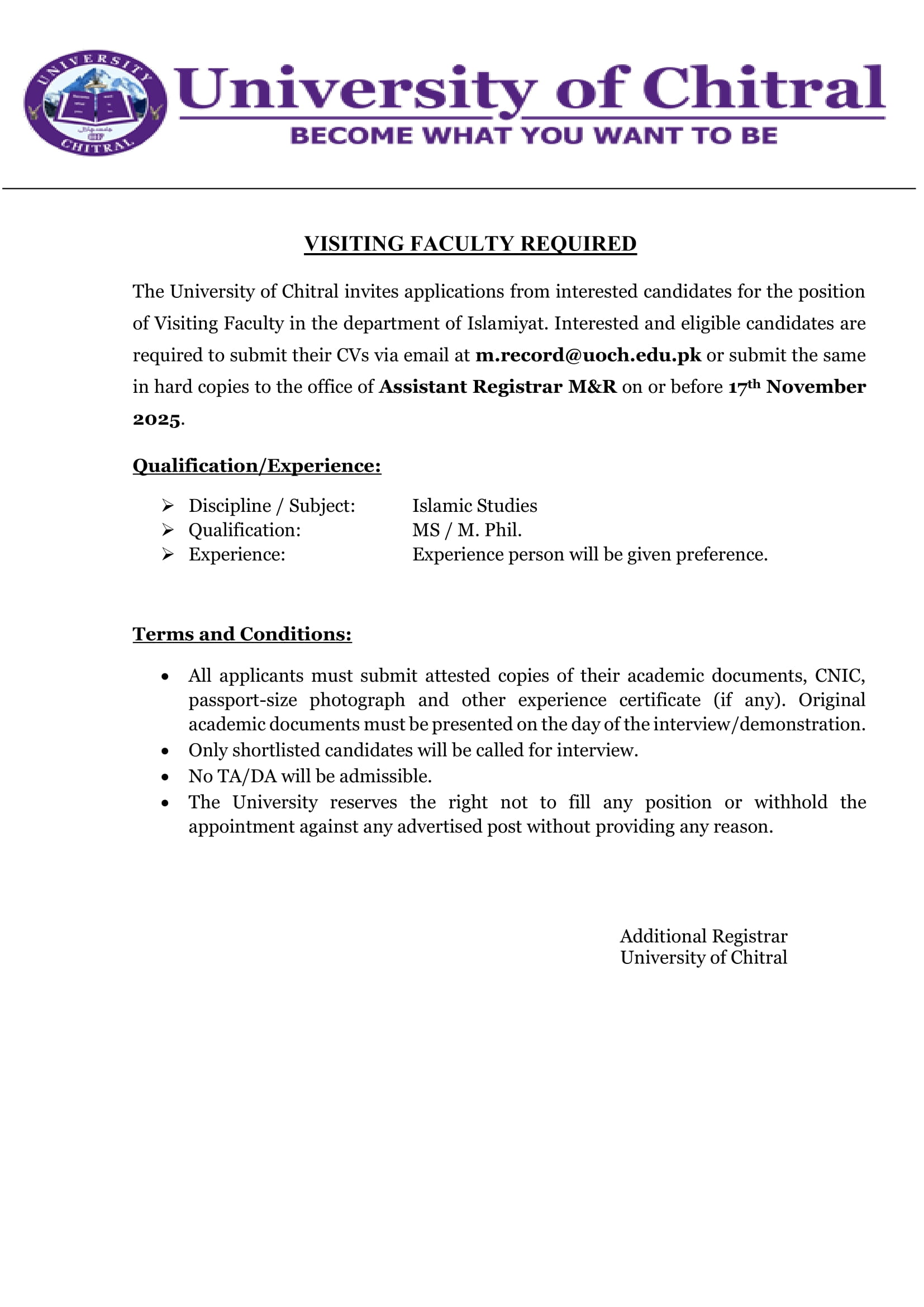 • University of Chitral will remain closed on account of "Quid-eAzam Day" on Thursday 25th December 2025