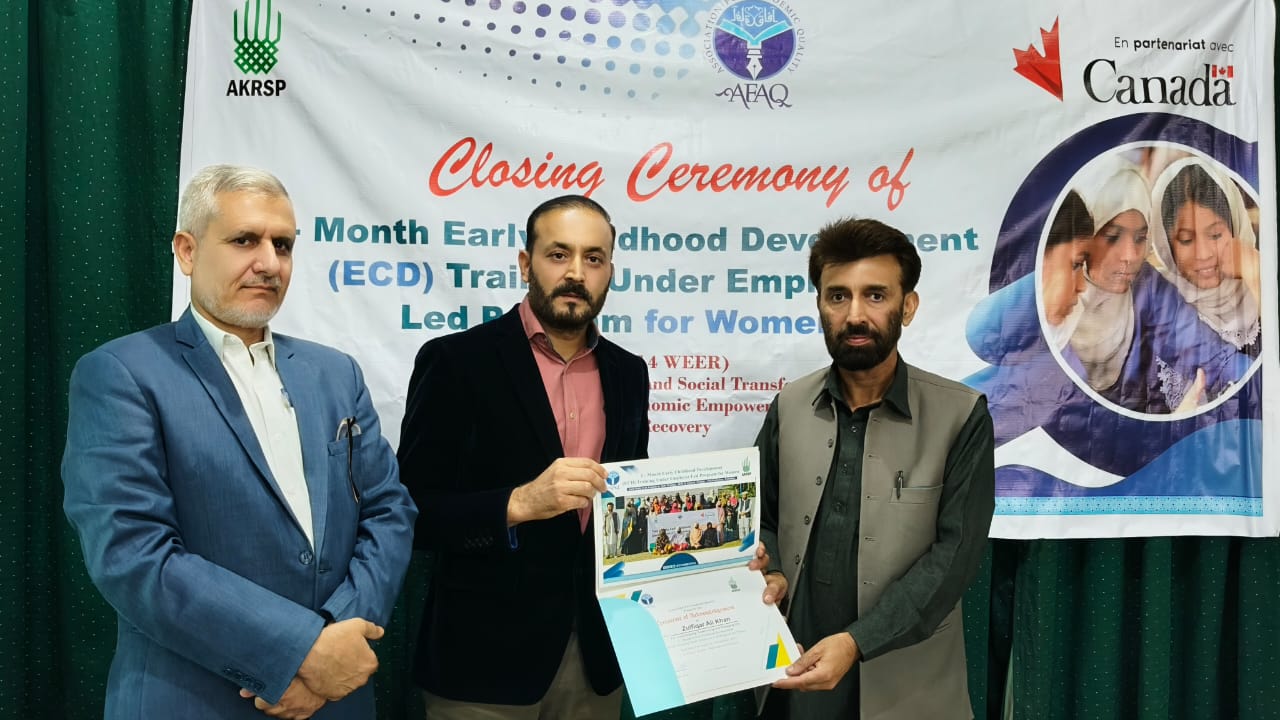 A two-month Early Childhood Development (ECD) training course, the second batch organized by the Afaq Education Training Center in collaboration with the Aga Khan Rural Support Programme (AKRSP) Chitral, concluded successfully in Lower Chitral. A total of 35 female ECD teachers participated in the course, which focused on modern, scientific principles for the better mental and physical nurturing and development of young children.