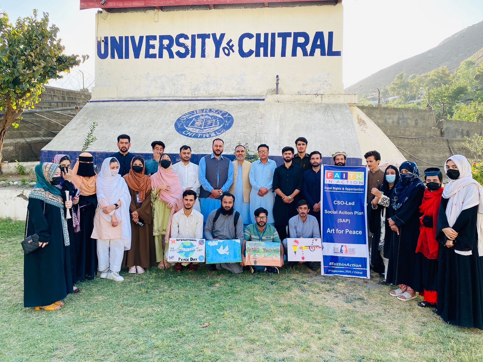 Blue Veins organization, in collaboration with the Departments of Urdu and Sociology, University of Chitral, organized an activity on ‘The Art of Peace’. Students actively participated in the event and showcased their creative artwork, reflecting the messages of harmony, peace, tolerance, and promoting the concept of mutual coexistence.