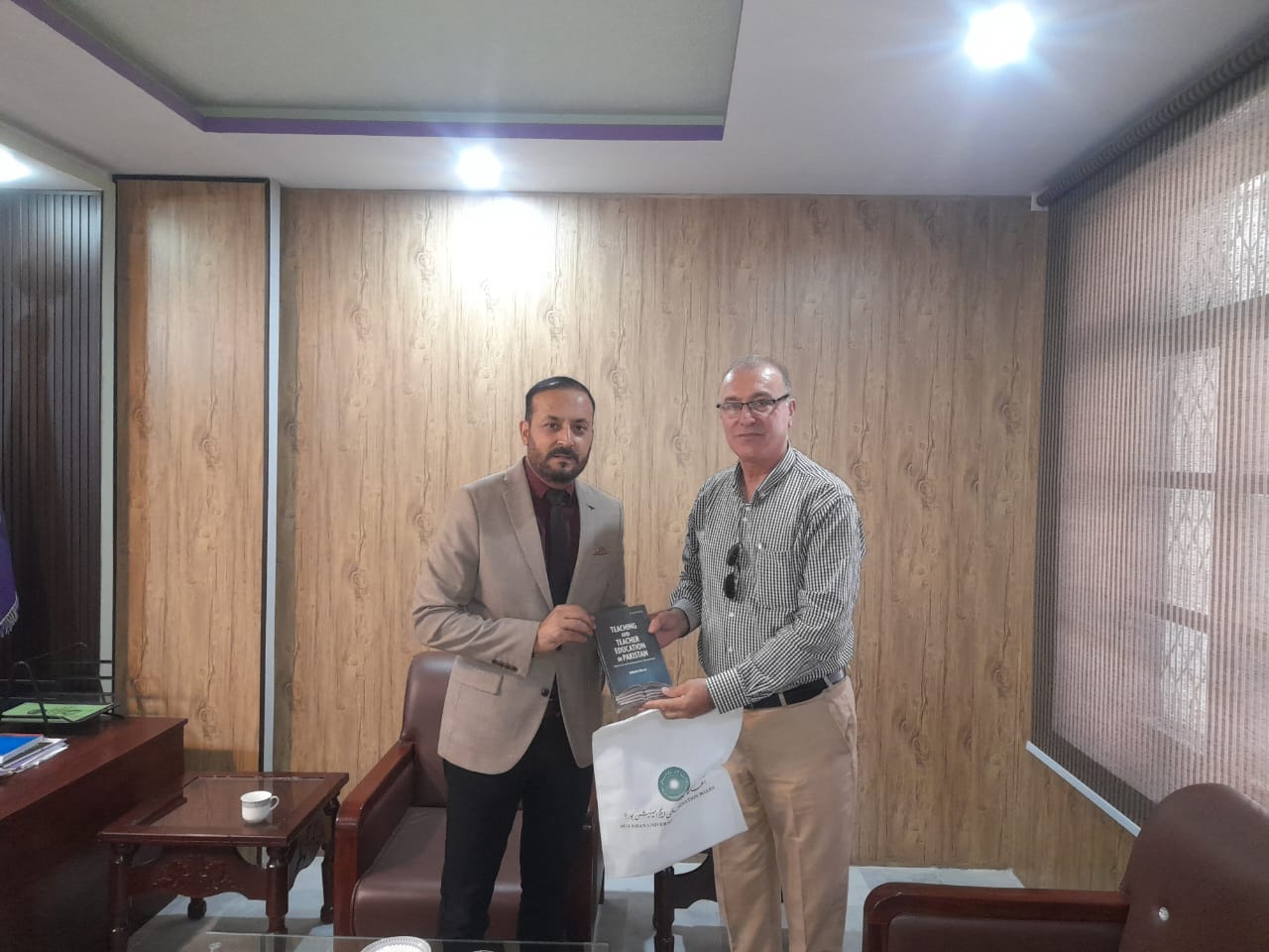 a book “Teaching and Teacher Education in Pakistan” to the Vice Chancellor,
